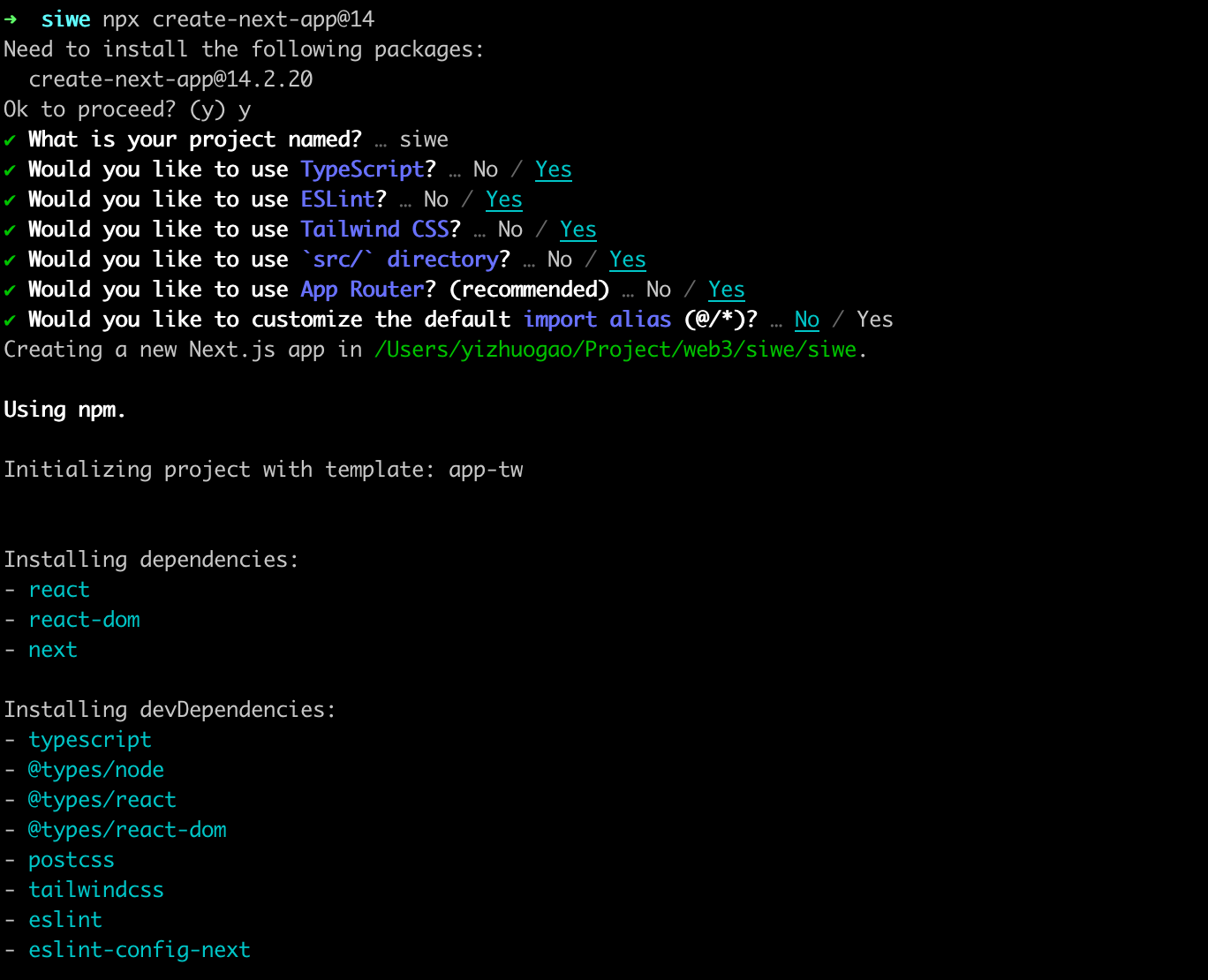 npx create-next-app@14按照提示安装好 nextjs,可以看到下面的内容: