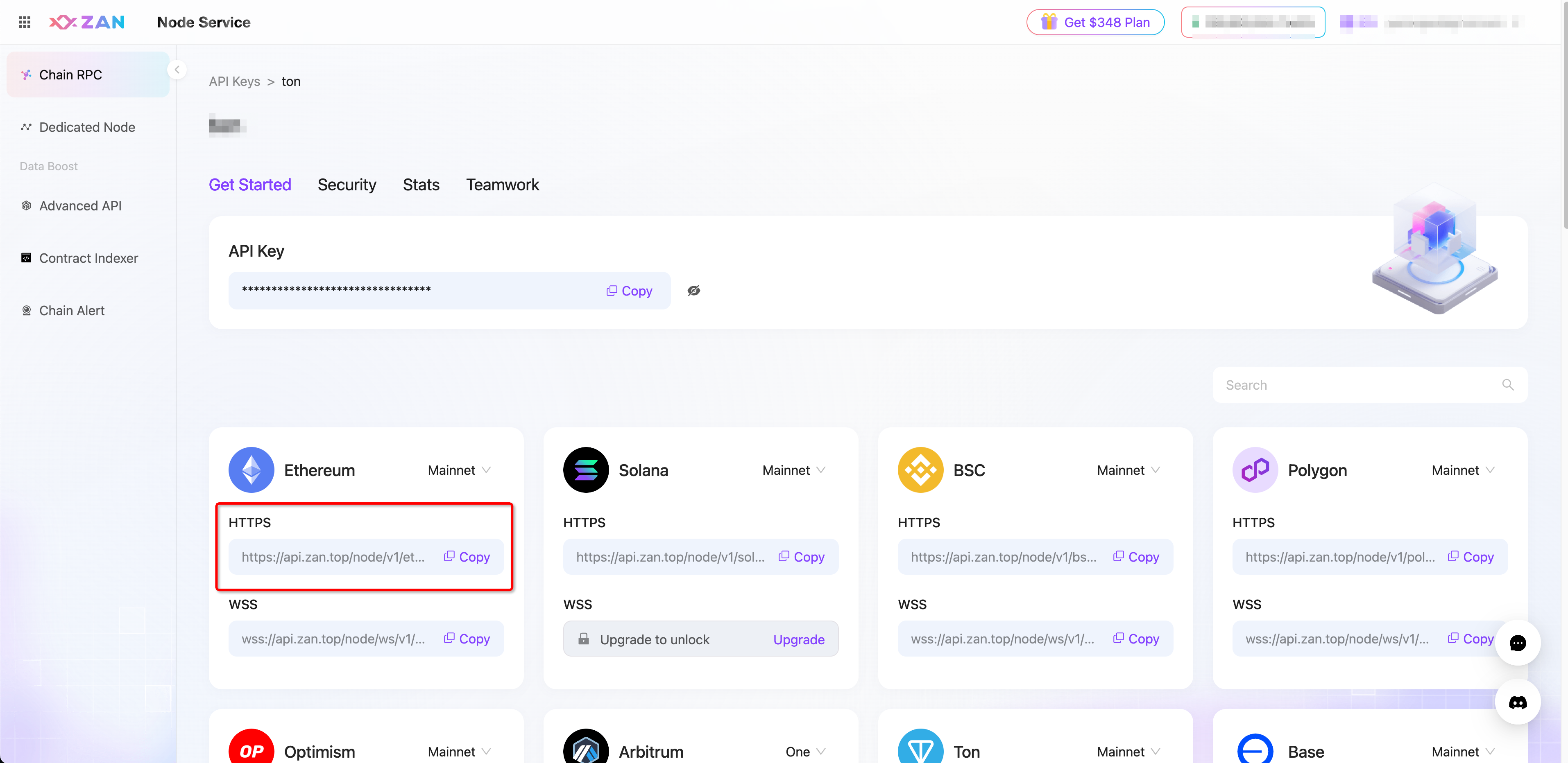现在我们在进行 SIWE 登录时,如果我们使用默认的 RPC 节点的话,验证的过程将会花费近 30s 的时间,所以这里强烈建议使用专门的节点服务来提升接口的响应时间。本文使用的是 ZAN 的节点服务,可以前往 ZAN 节点服务控制台获取对应的 RPC 连接。