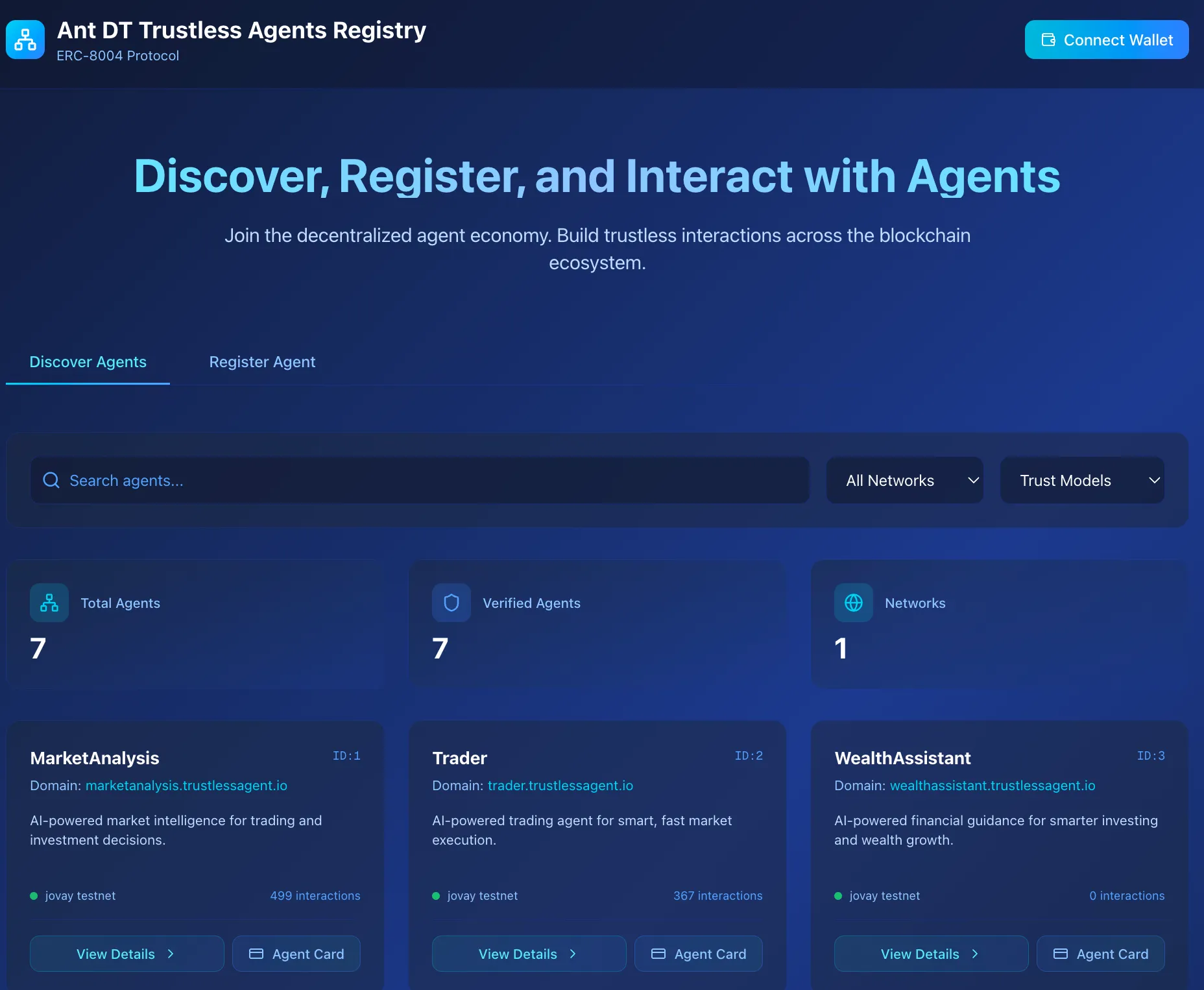 結合 ERC-8004 的設計,我們在 Pharos 和 Jovay 網絡構建了面向 Web3 的 Trustless 服務能力,可幫助用戶分配 Web3 世界的「可信身份 Agent DID」,同時我們也在原有的基礎上進行了金融級增強的 TEE/ZK 驗證能力擴展,未來支持如面向機器交易在金融場景的更高安全的驗證增強。