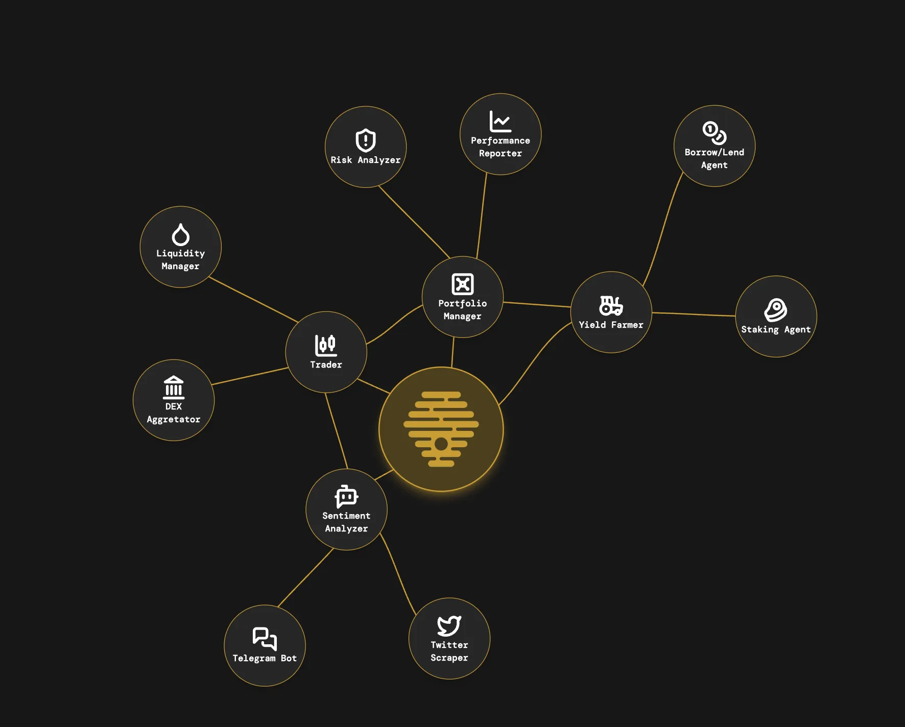 The Hive is a modular and interoperable DeFi Agent network built on Solana. Using a Swarm architecture, The Hive can automatically handle complex DeFi operations such as trading, staking, and lending through users' chat commands. The Hive was developed by @jsonhedman, who has previously won first place in Microsoft's generative AI hackathon, first place in Microsoft's AI classroom hackathon, second place in the Vanderbilt generative AI showcase, and first place in the Coinbase x Polygon x Thirdweb Hack House.