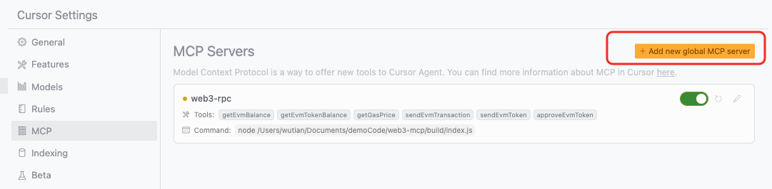 Improve more logic and methods, such as supporting multiple evm networks, querying gas, sending transactions, querying token information, and token transactions, and package them and reference them in Cursor. Cursor is a new intelligent IDE that seamlessly integrates AI technology. Cursor is built on VSCode, easy to use, and can greatly improve your work efficiency. It is also an application that supports MCP integration.
